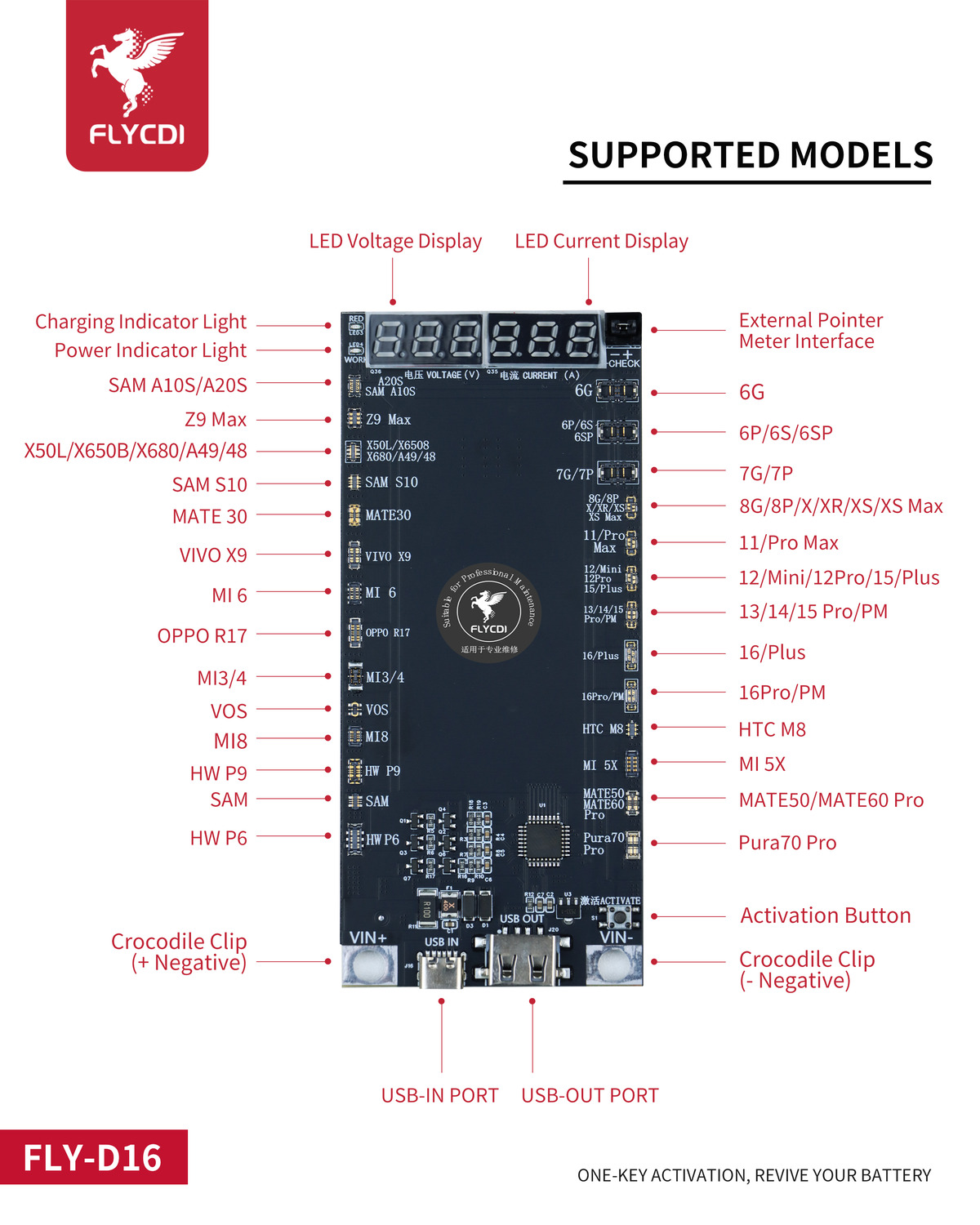 Apăsați butonul de activare (ACTIVATE) pentru a porni procesul de încărcare sau de testare a bateriei.