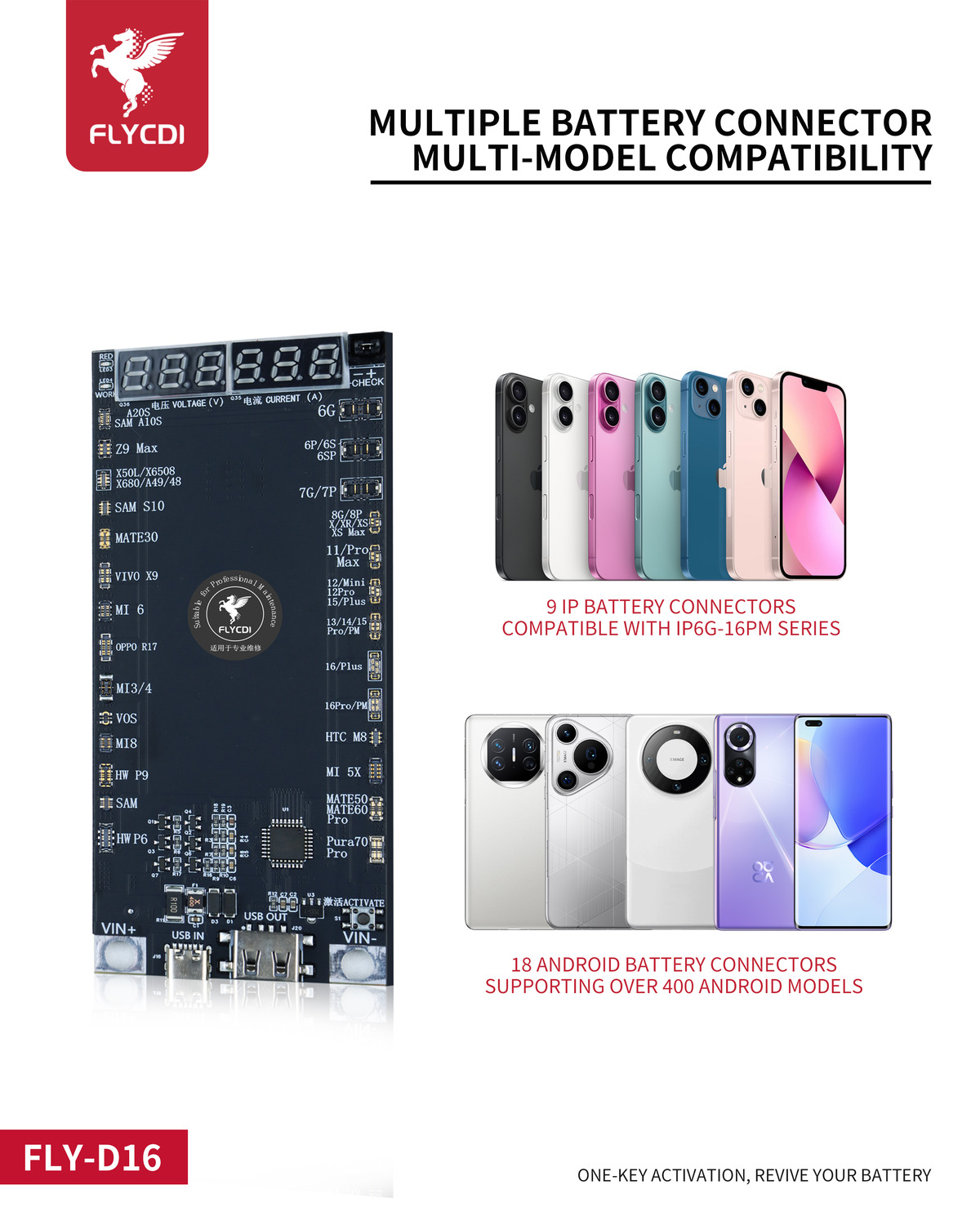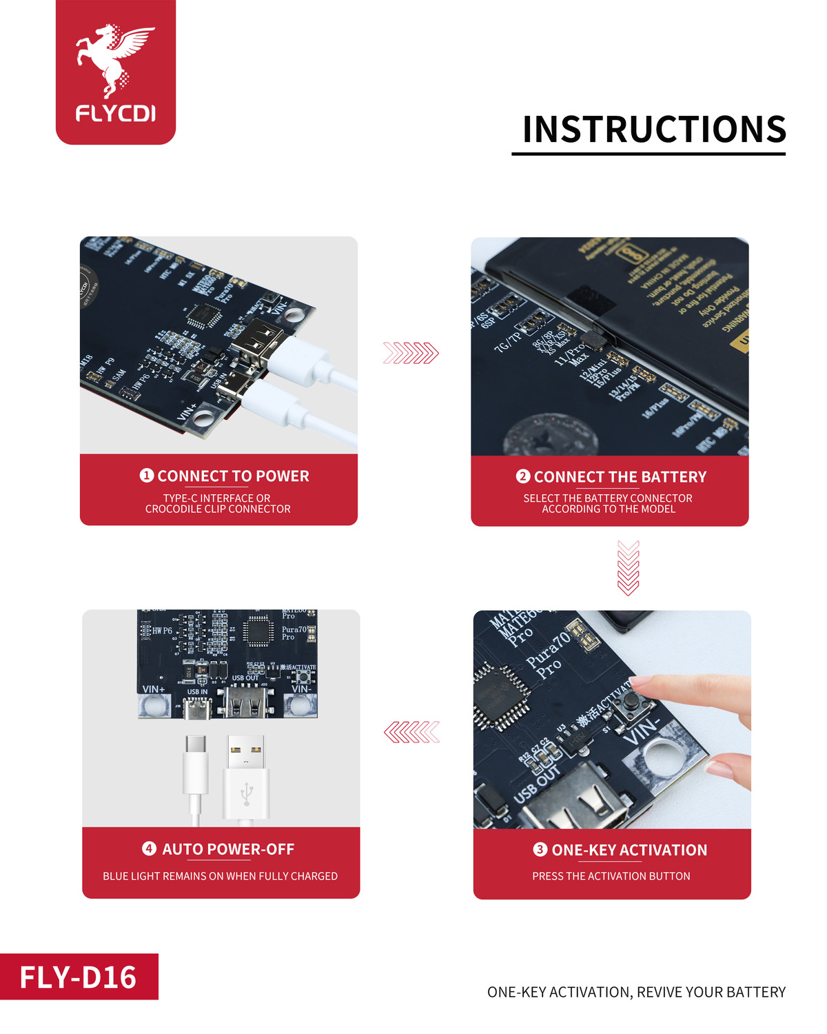 Alegeți conectorul de baterie potrivit în funcție de modelul dispozitivului și conectați bateria la modul.