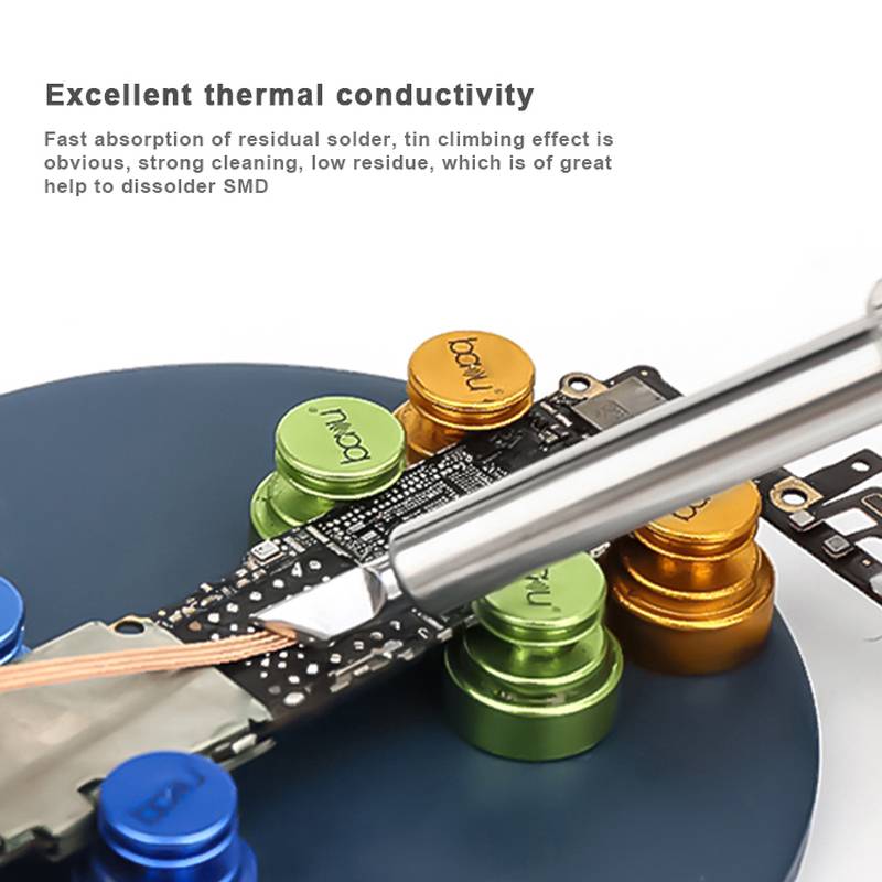 🧵 Bandă de dezlipire din cupru (Copper Desoldering Wick) BK-1515Bandă profesională de dezlipire realizată din aliaj de cupru, concepută pentru îndepărtarea rapidă și eficientă a fludorului rezidual de pe plăcile electronice. ⭐ Caracteristici principale