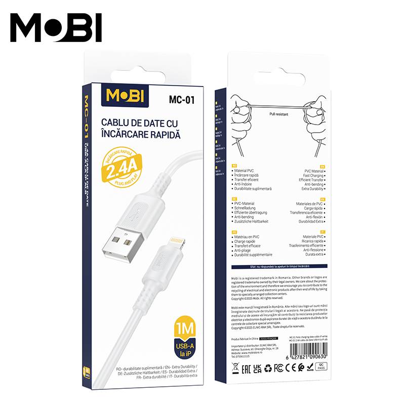 Cablu de date Mobi MC-01 USB-A la IP 2.4A alb |