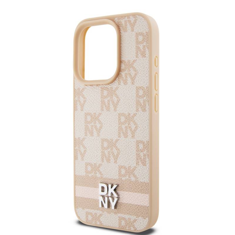 Husa telefon DKNY PU Leather Checkered Pattern and Stripe pentru iPhone 15 Pro Max Pink |