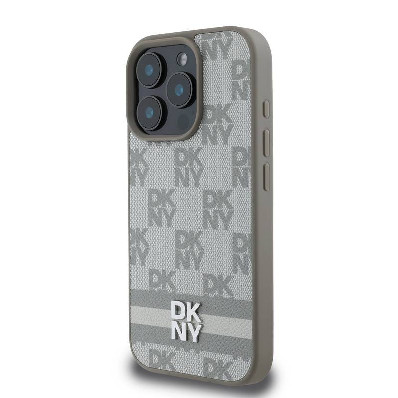 Husa telefon DKNY PU Leather Checkered Pattern and Stripe pentru iPhone 16 Pro Max Beige |