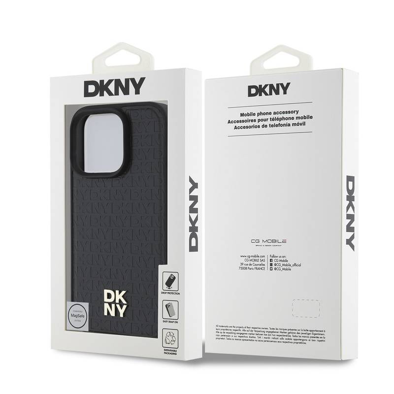 Husa telefon DKNY PU Leather Repeat Pattern Stack Logo MagSafe pentru iPhone 16 Pro Black |