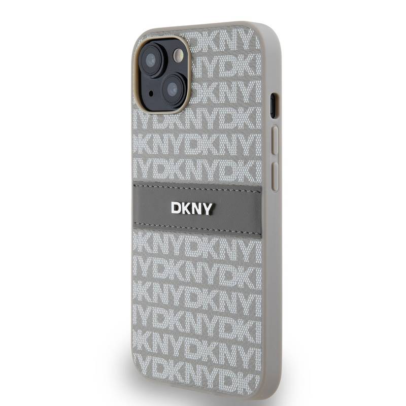 Husa telefon DKNY PU Leather Repeat Pattern Tonal Stripe pentru iPhone 14 Beige |