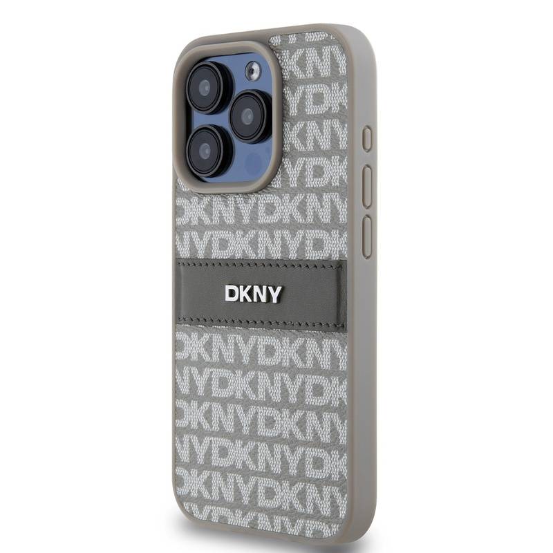 Husa telefon DKNY PU Leather Repeat Pattern Tonal Stripe pentru iPhone 14 Pro Max Beige |