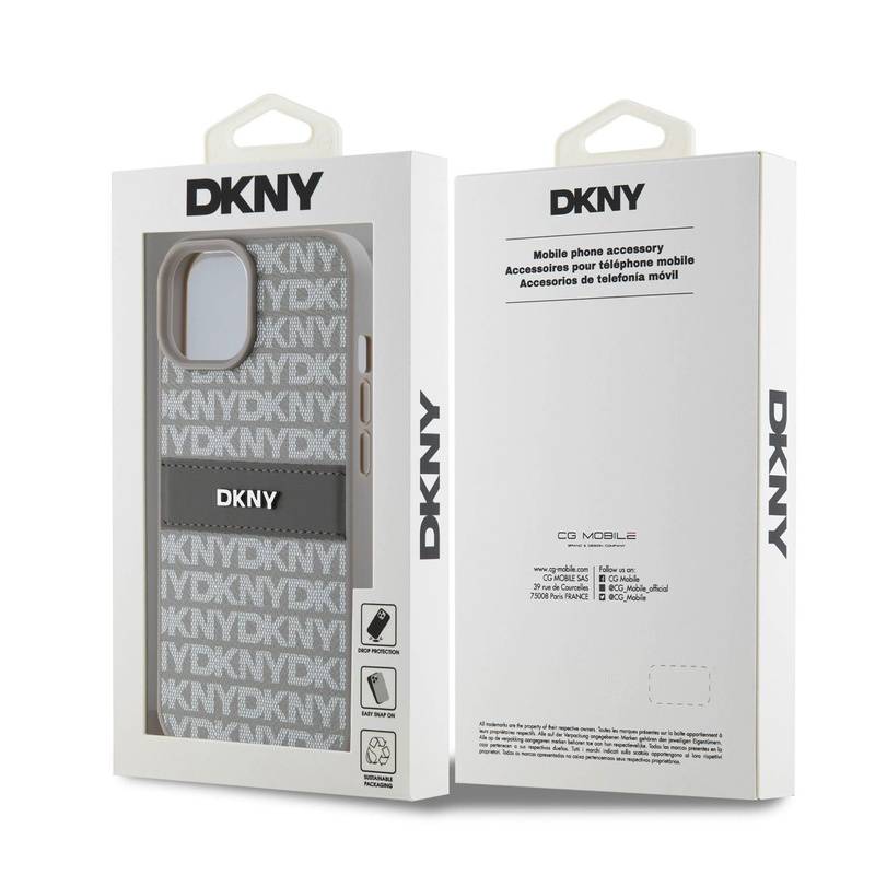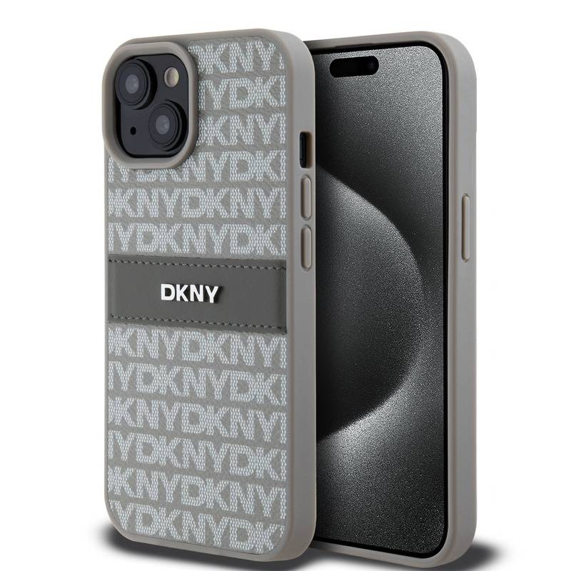 Husa telefon DKNY PU Leather Repeat Pattern Tonal Stripe pentru iPhone 15 Beige |