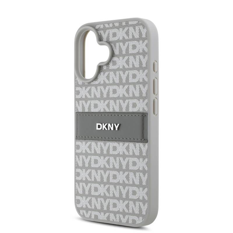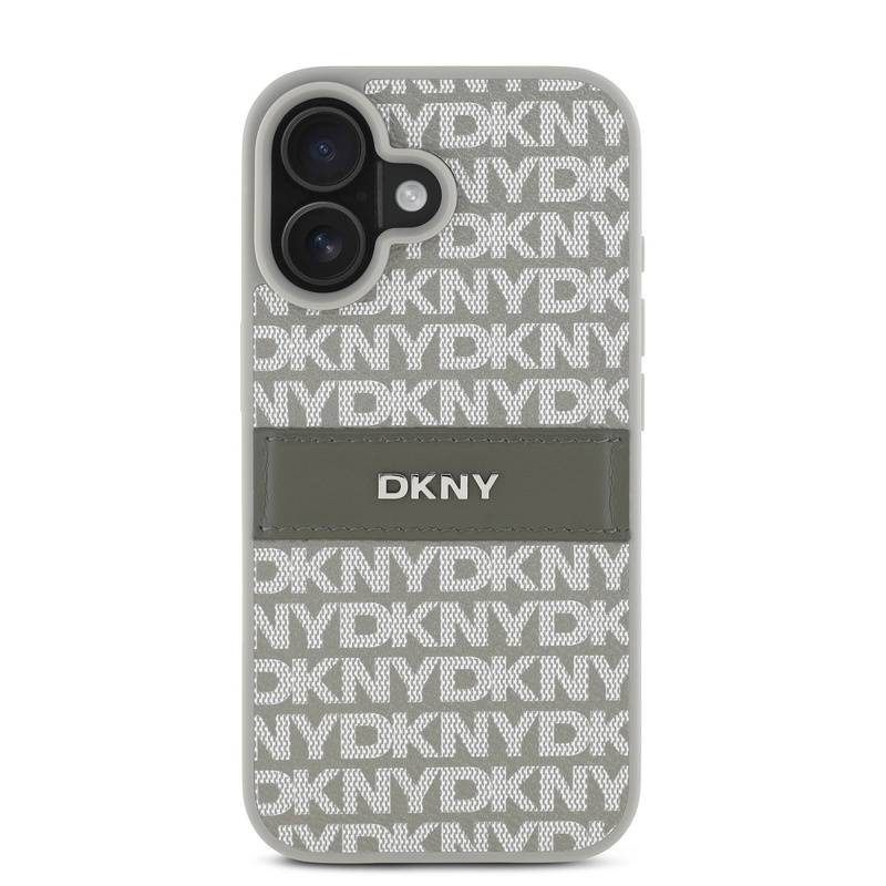 Husa telefon DKNY PU Leather Repeat Pattern Tonal Stripe pentru iPhone 16 Beige |