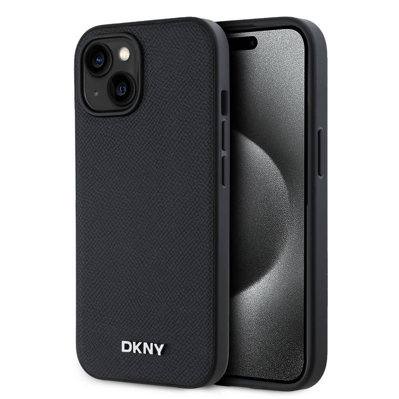 Husa telefon DKNY PU Leather Silver Metal Logo Magsafe pentru iPhone 15 Black |