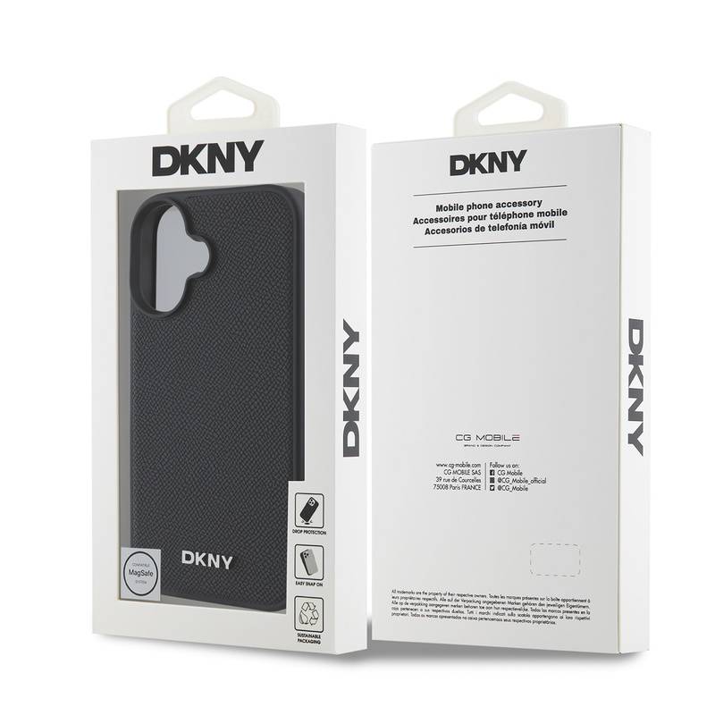 Husa telefon DKNY PU Leather Silver Metal Logo Magsafe pentru iPhone 16 Black |