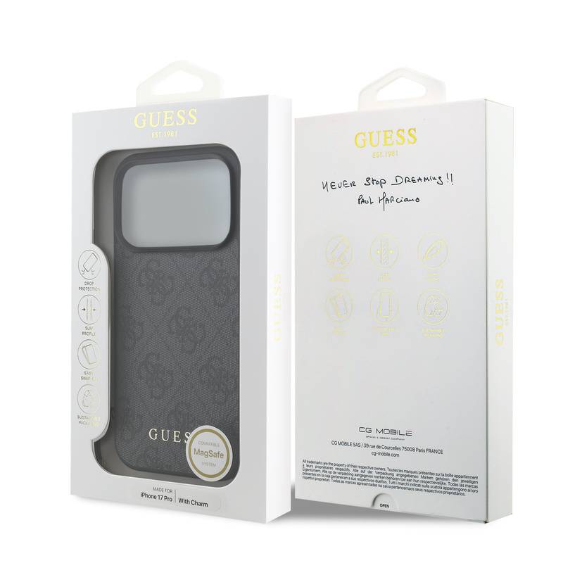Husa telefon Guess 4G Charm MagSafe Case pentru iPhone 17 Pro Tone on Tone Grey |
