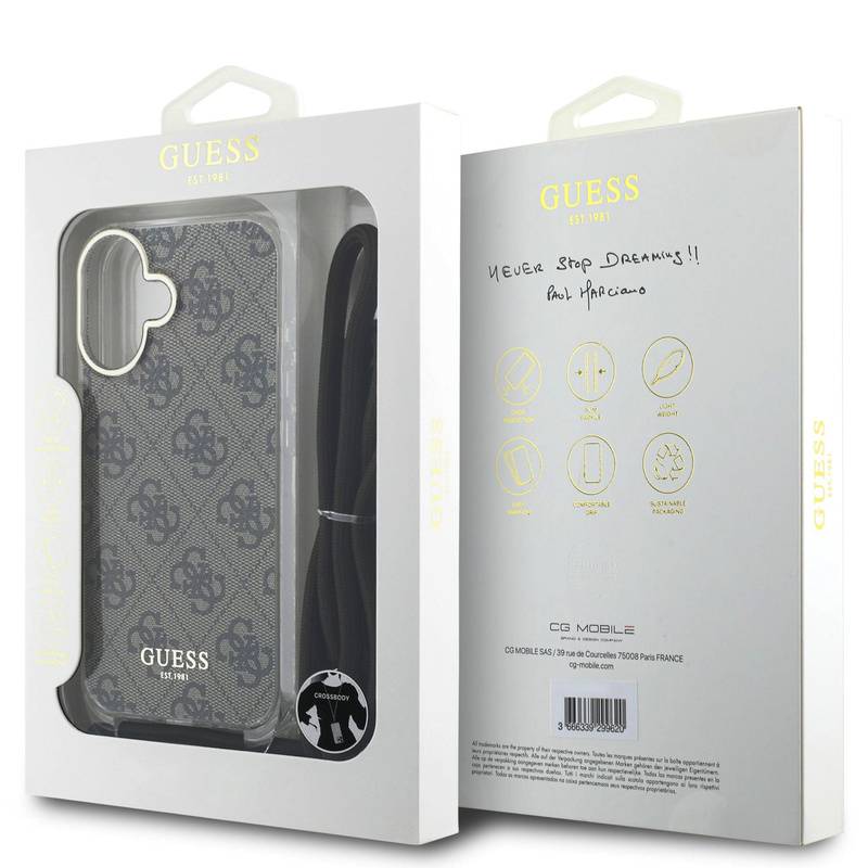 Husa telefon Guess IML 4G Printed Crossbody Strap pentru iPhone 16 Brown |