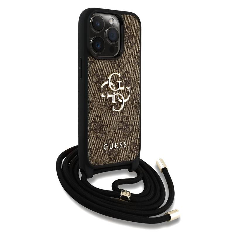 Husa telefon Guess PU 4G Metal Logo Crossbody Strap pentru iPhone 15 Pro Brown |