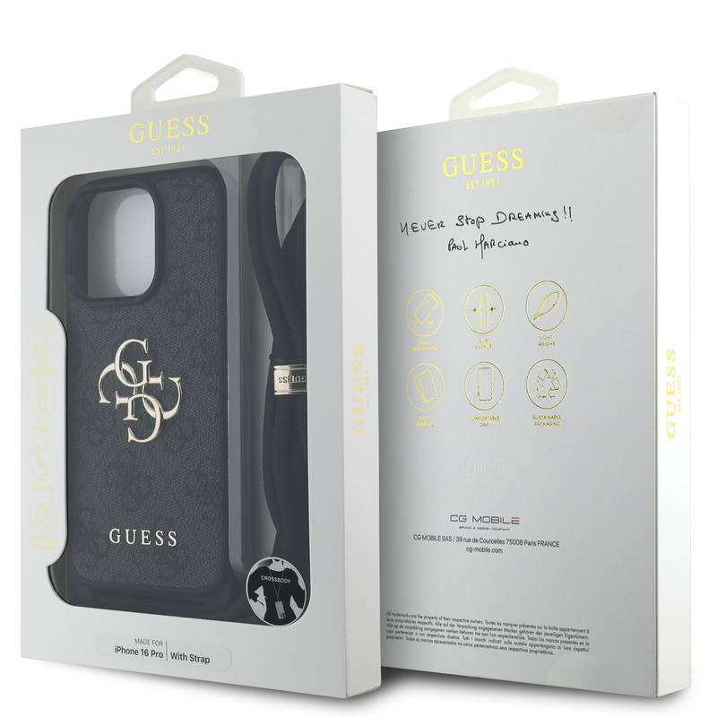 Husa telefon Guess PU 4G Metal Logo Crossbody Strap pentru iPhone 16 Pro Black |