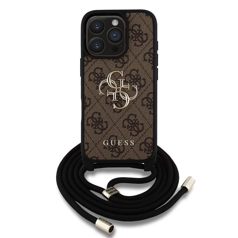 Husa telefon Guess PU 4G Metal Logo Crossbody Strap pentru iPhone 16 Pro Brown |