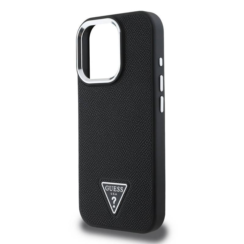 Husa telefon Guess PU Grained Triangle Logo MagSafe Case pentru iPhone 16 Pro Black |