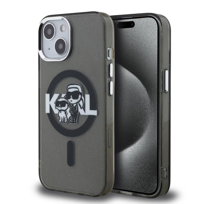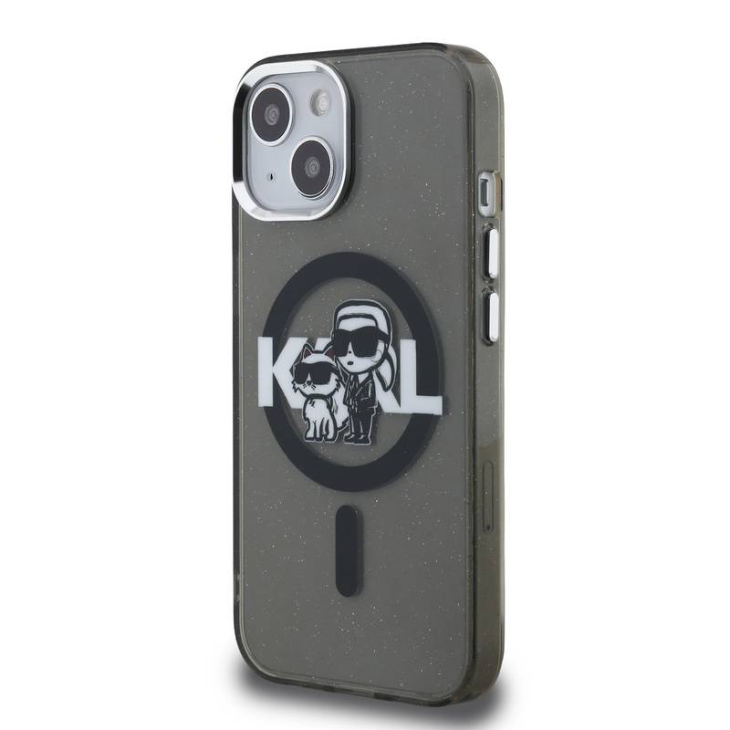 Husa telefon Karl Lagerfeld IML Glitter Karl and Choupette Sketch MagSafe Case pentru iPhone 15 Black |