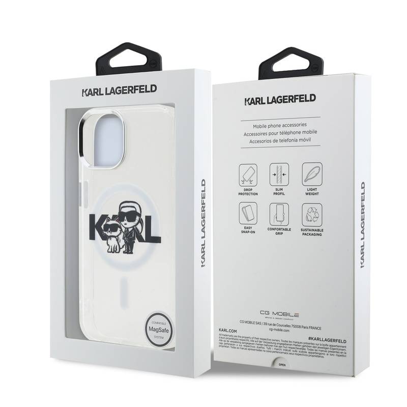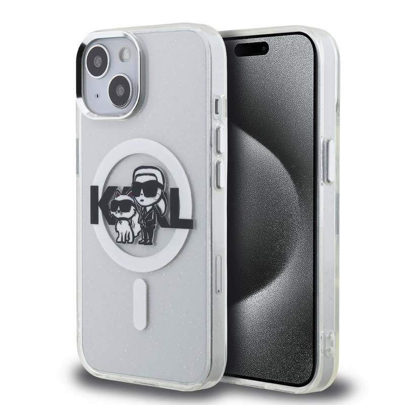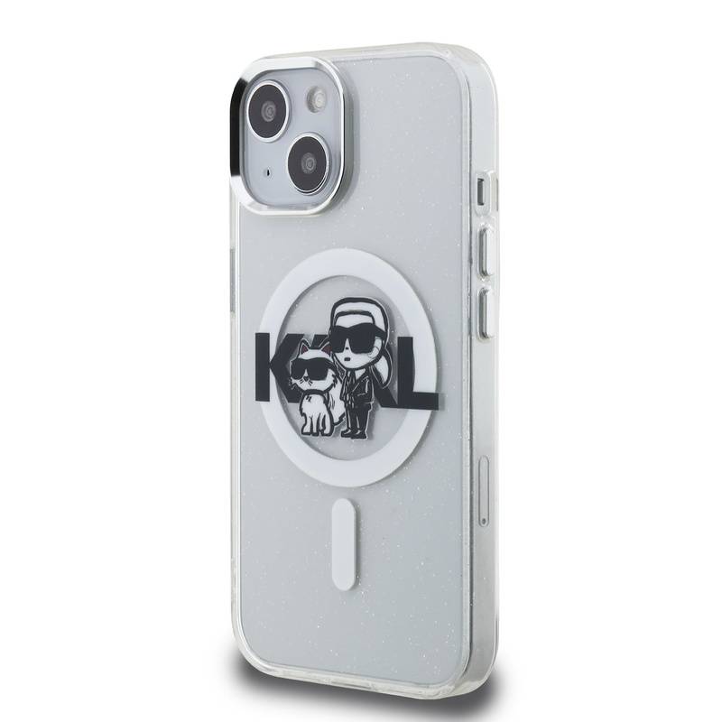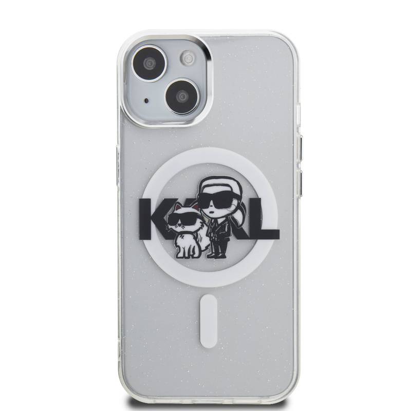 Husa telefon Karl Lagerfeld IML Glitter Karl and Choupette Sketch MagSafe Case pentru iPhone 15 Transparent |