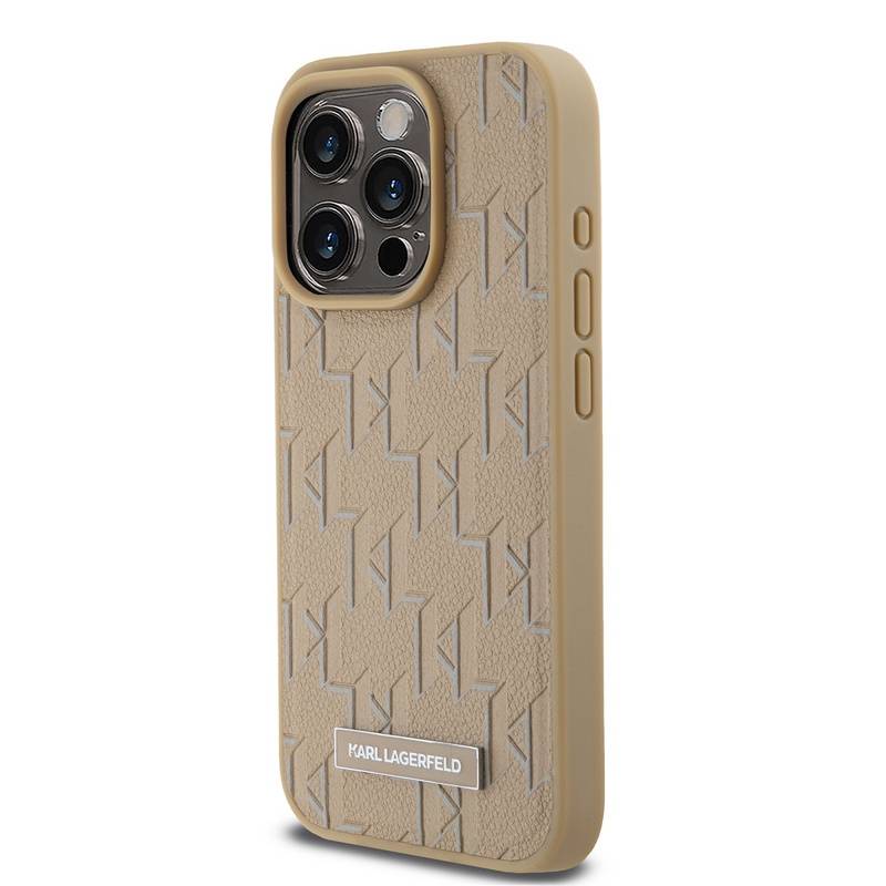 Husa telefon Karl Lagerfeld PU Leather Monogram Metal Logo MagSafe Case pentru iPhone 14 Pro Max Beige |
