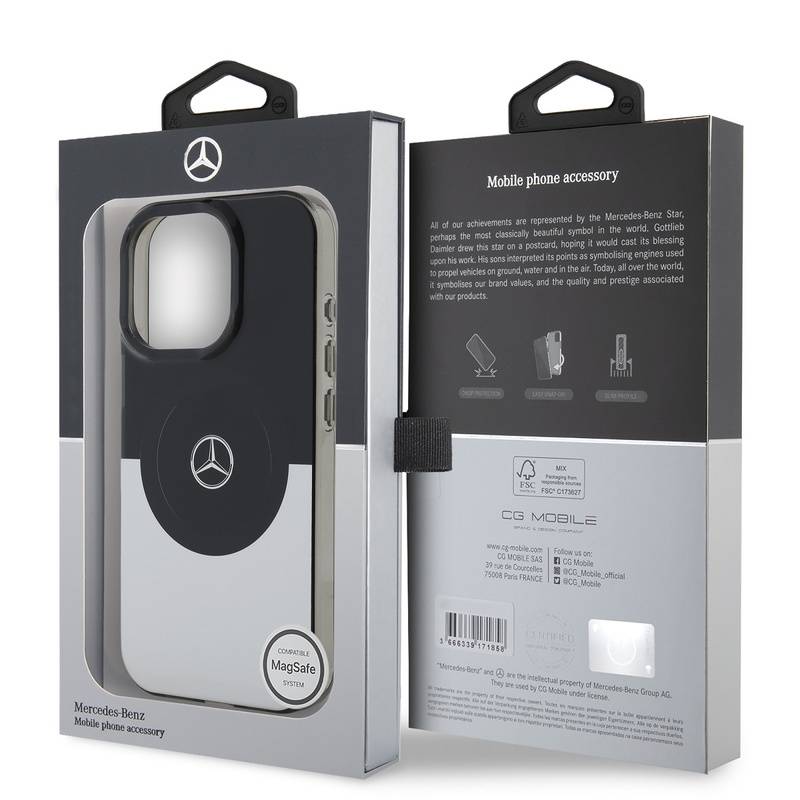 ★ Husă Mercedes PC/TPU Double Layer cu MagSafe – Protecție premium & design sport-luxDesign inspirat din universul Mercedes, care îmbină eleganța premium cu spiritul sportiv. Logo-ul distinctiv din centru transformă această husă într-un accesoriu exclusiv pentru telefonul tău. 🛡 Construcție dublu strat – protecție reală