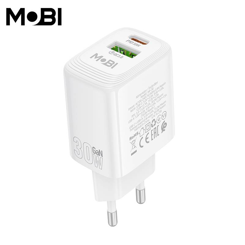 Incarcator priza Mobi MP-30 1A1C PD 30W QC 3.0 alb |