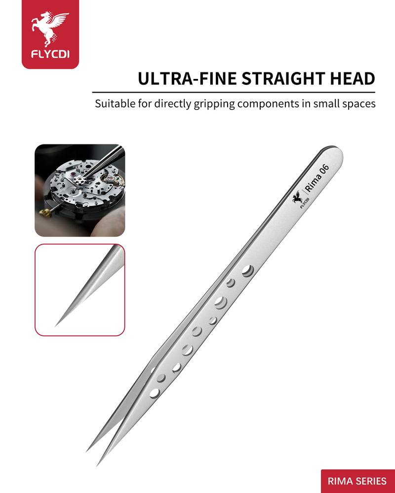 🔔 FLYCDI RIMA 06 este alegerea perfectă pentru tehnicieni profesioniști care au nevoie de o pensetă ușoară, precisă și durabilă, cu vârf drept pentru manipularea componentelor electronice.
