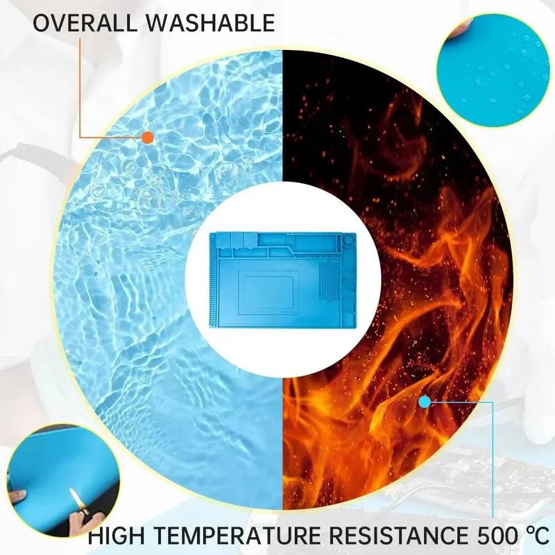 CovoraČul siliconic termorezistent este accesoriul ideal pentru atelierele profesionale de reparaČii, dar Či pentru pasionaČii de electronicÄ. Fabricat din materiale premium, non-toxice Či prietenoase cu mediul, oferÄ o suprafaČÄ sigurÄ, stabilÄ Či rezistentÄ la temperaturi extreme â perfectÄ pentru lipire, demontare Či manipularea componentelor sensibile.