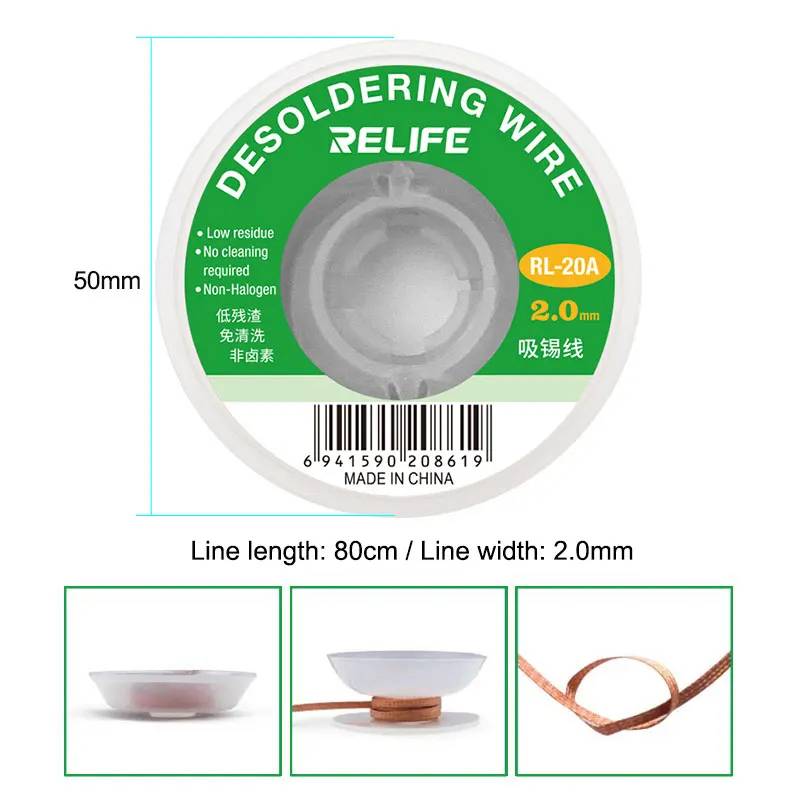 RELIFE RL-20A este o sârmă de dezlipire (desoldering wire) premium, concepută pentru îndepărtarea eficientă a fludorului de pe plăcile PCB în timpul reparațiilor electronice. Cu o lățime de 2.0 mm, oferă precizie ridicată și control excelent, fiind ideală pentru lucrări fine și zone sensibile.